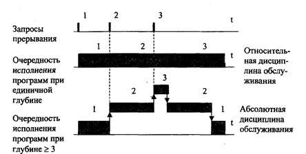 Рис.3.12. Процессы прерывания с различной глубиной прерывания и дисциплиной обслуживания