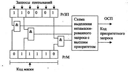 Маска прерывания представляет собой двоичный код, разряды которого поставлены в соответствие запросам или классам (уровням) прерываний. Маска загружается командой программы в регистр маски (рис. 3.14).