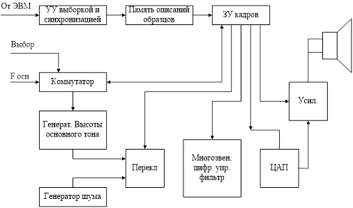 Устройства вывода речевой информации – синтезаторы. Задача вывода речевой информации сводится к преобразованию машинных кодов, в колебания звуковых частот, составляющих речевой сигнал. Устройства вывода речевых сообщений при любой реализации аппаратно и программно проще, чем устройства ввода.