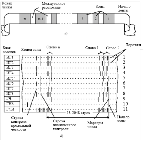 Рисунок 1.21 - Размещения информации при последовательно-параллельной форме размещения информации на магнитной ленте НМЛ