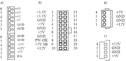 в) и г) разьемы питания накопителей.