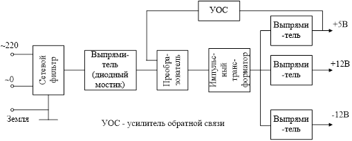 Структурная схема блока питания с импульсным трансформатором представлена на рисунке 2.2.