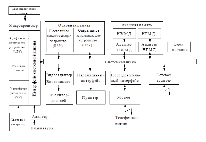 Рис. 1.5. Структурная схема ПК. (описание отдельных узлов и их работы даны в тексте)