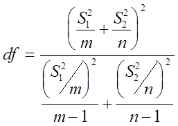Для аппроксимации степеней свободы применяется формула, приведенная ниже. Как правило, число, возвращаемое этой формулой, не является целым. Оно округляется, и с помощью полученного целого числа можно определить критическое значение по t- таблице.