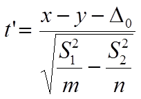 Проверяемое статистическое значение t определяется по следующей формуле: