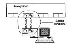 Рис. 4.27. Домен коллизий, образуемый компьютером и портом коммутатора