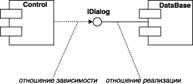 | Отношение зависимости служит для представления факта наличия специальной формы связи между двумя элементами модели, когда изменение одного элемента модели оказывает влияние или приводит к изменению другого элемента модели. Отношение зависимости на диаграмме компонентов изображается пунктирной линией со стрелкой, направленной от клиента или зависимого элемента к источнику или независимому элементу модели. Зависимости могут отражать связи отдельных файлов программной системы на этапе компиляции и генерации объектного кода. В других случаях зависимость может указывать на наличие в независимом компоненте описаний классов, которые используются в зависимом компоненте для создания соответствующих объектов. Применительно к диаграмме компонентов зависимости могут связывать компоненты и импортируемые этим компонентом интерфейсы, а также различные виды компонентов между собой. |