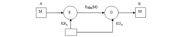- аутентификацию (пользователь В может быть уверен в том, что отправителем является А, так как, кроме В, только А владеет ключом К и ,следовательно, только А мог создать шифрованное сообщение, которое можно дешифровать с помощью ключа К);