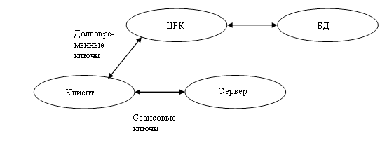 Таким образом, Kerberos – протокол с посредником, в котором используется схема распределения ключей на основе криптографии с секретным ключом. Используется два уровня ключей. Чтобы связаться с сервером, клиенту нужен секретный сеансовый ключ (и серверу нужен этот же ключ). Этот ключ клиент может получить от ЦРК, используя для связи долговременный ключ. Долговременные ключи генерируются на основе паролей пользователей, указываемых ими при входе в систему, с помощью функций хэширования. ЦРК ведет базу данных с информацией об учётных записях всех пользователей своей области и их паролях (в хэшированном виде).