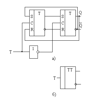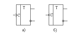 На рис. 4.9,б приведено символическое изображение Т-триггера.
