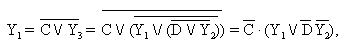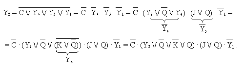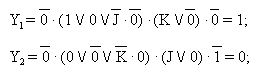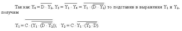 Выражения построены таким образом, что переменные левых частей входят в правые части выражений. Такие выражения имеют следующий смысл: если в правые части подставить значения Y1 и Y2 для данного момента времени, то логические выражения определяют для этих переменных новые значения, которые установятся в последующие моменты времени.