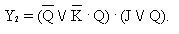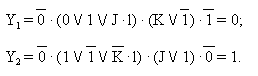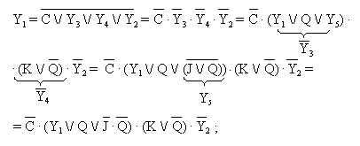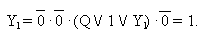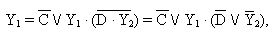 Из табл. 4 видно, что значения Y1, Y2, Q встречаются в двух комбинациях: Y1 = 1; Y2 = 0; Q = 0 и Y1 = 0; Y2 = 1; Q = 1. Если первую из этих комбинаций значений подставить в (4.18) и (4.19), то получим