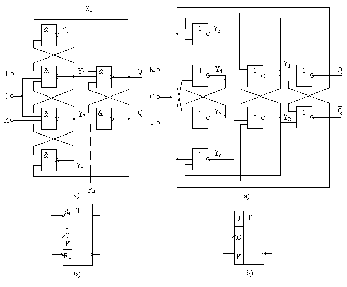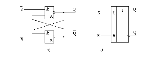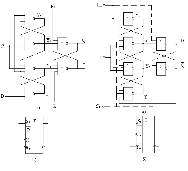 На рис. 4.2,б показано условное обозначение RS-триггера с инверсными входами.