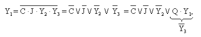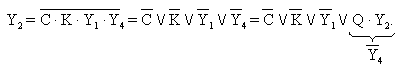 Логические выражения для уровней на управляющих входах Y1 и Y2 (построенные без учета показанных штриховой линией цепей установочных входов Rd и Sd):