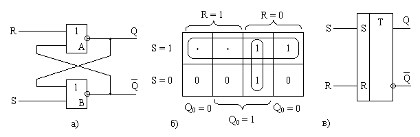 На рис. 1,в показано условное обозначение асинхронного RS-триггера.