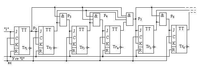 ipi может быть получено путем подачи переноса pi на счетный вход триггера i-го разряда, хранившего значение ai, - перенос, передаваемый в (i + l)-й разряд, pi+1 = aipi. Так как p1 = 1 то р2 = a1.