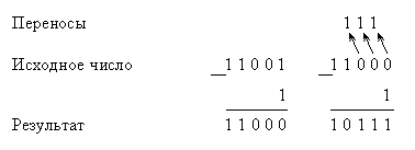 Таким образом, в результате вычитания часть числа левее первого из разрядов, содержащих 1, остается неименной, цифры остальных разрядов инвертируются.