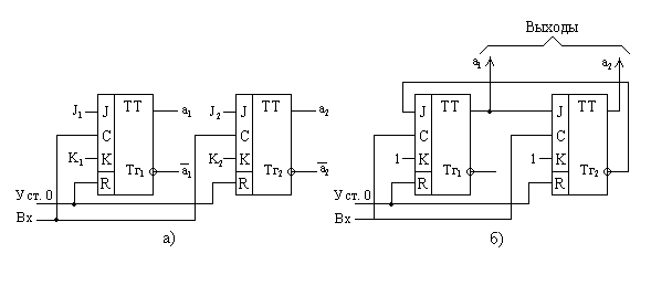 2; Kl = l; J2 = a1; K2 = l. Полученные логические выражения определяют способ включения входов J и К триггеров, показанный на рис. 8.48,б.