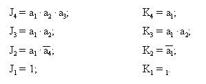 3; K1 = 1; J2 = a1; K2 = a1; J3 = a1 . a2; K3 =1.