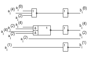 На рис. 3,68 приведена схема, формирующая обратный код по полученным выше логическим выражениям,