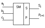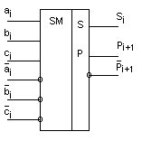 Из рассмотренного в § 3.2 принципа сложения многоразрядных двоичных чисел следует, что в каждом из разрядов производятся однотипные действий: определяется цифра суммы путем сложения по модулю 2 цифр слагаемых и поступающего в данный разряд переноса и формируется перенос, передаваемый в следующий разряд. Эти действия реализуются одноразрядным двоичным сумматором. Символическое изображение такого сумматора показано на рис. 9.61.а. Он имеет три входа для подачи цифр разрядов слагаемых