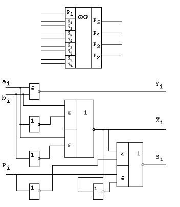 входных переменных, а также выходы, на которых формируются инверсные значения выходных переменных. Пример такого одноразрядного сумматора приведен на рис. 9.61,6.