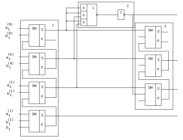 формируются одновременно во всех разрядных сумматорах, одновременно поступают на входы блока ускоренного переноса и, следовательно, в этом блоке одновременно формируются переносы, подаваемые в разрядные сумматоры. После поступления переносов из блока ускоренного переноса в разрядных сумматорах формируются суммы