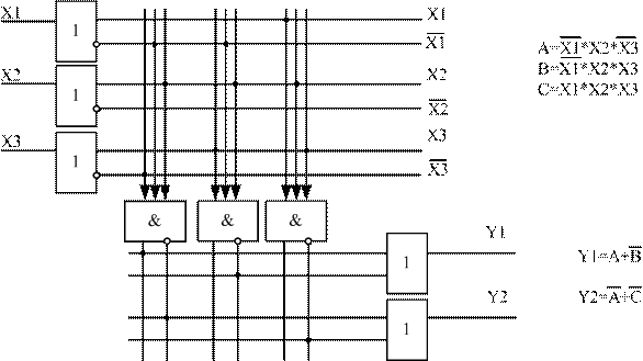· фиксированной матрицы «ИЛИ» (которая представляет из себя 1 многовходовой элемент «ИЛИ»)