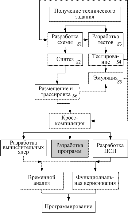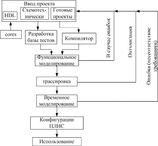 Рис. 39. Маршрут проектирования конфигурации ПЛИС при построении программно-управляемых устройств