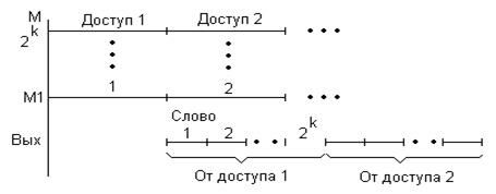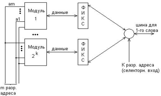 M – разряд из (m+k) разрядов адреса рассылаются по всем модулям памяти, а k разрядов определяют какое из N слов читать первым.
