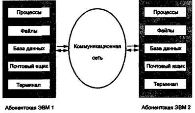 Коммуникационная сеть обеспечивает физическое соединение между абонентскими ЭВМ — передачу сообщений по каналам связи. Для того чтобы могли взаимодействовать процессы, между ними должна существовать и логическая связь (процессы должны быть инициированы, файлы данных открыты).
