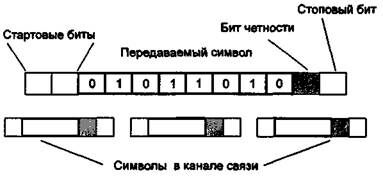 Для передачи кодовой комбинации по двухпроводной линии группа битов передается по одному проводу бит за битом. Это передача информации последовательным кодом. Она, вполне естественно, медленнее, так как требует преобразования данных в параллельный код для дальнейшей обработки в ЭВМ, но экономически более выгодна для передачи сообщений на большие расстояния.