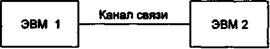Следует обратить внимание еще на один способ связи между ЭВМ, когда ЭВМ объединены в комплекс с помощью интерфейсного кабеля и с помощью двухпроводной линии связи.