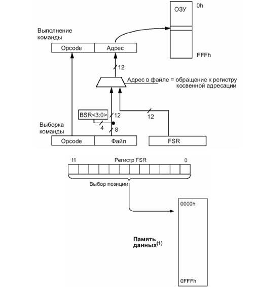 В микроконтроллерах РIС18FХХ2 реализовано три 12-разрядных регистра косвенной адресации, для обращения ко всей области памяти данных (4096 байт):