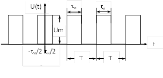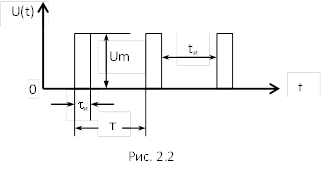 Кроме гармонических колебаний, в качестве периодических сигналов могут быть использованы сигналы прямоугольной формы (рис.2.2). Сигналы прямоугольной формы характеризуются следующими параметрами: амплитудой импульса Um, периодом Т длительностью импульса tи и длительностью паузы tи. Такой сигнал также может быть описан математическим выражением.