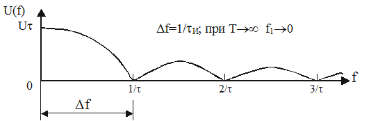 На рис.2.7 приведен частотный спектр одиночного прямоугольного импульса, принимающего, значение Um на интервале [-t/2, t/2].