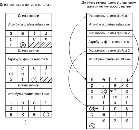 | Элементы каталогов внутри inode (небольшие каталоги) | Нет | Да | Да | Да | |