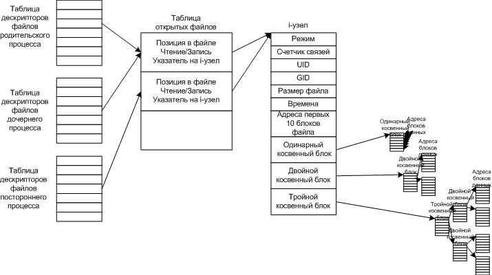 Записи для каждого открытого файла называются v-узлами (virtual i-node).