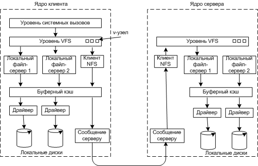 VFS используется не только для NFS, но и для работы инородными файловыми системами (FAT, /proc и т.д.)