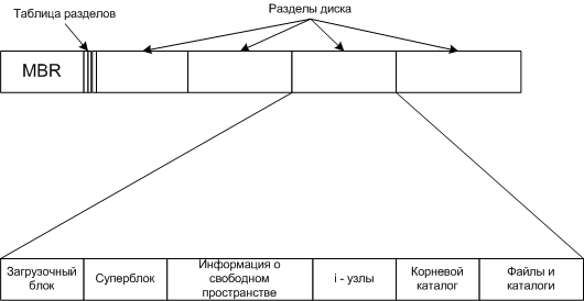 | Хранение информации о файлах | MFT | inode | inode | inode | inode |