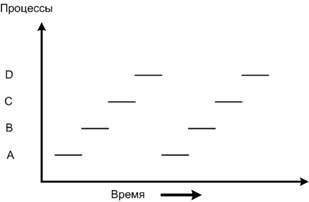 В многозадачной системе реальный процессор переключается с процесса на процесс, но для упрощения модели рассматривается набор процессов, идущих параллельно (псевдопараллельно).