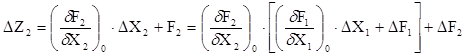 Индекс «0» у частной производной указывает, что ее значение вычисляется для «идеальных» значений переменных. Аналогично определяется отклонение выходной переменной Z2 от ее расчетного значения: