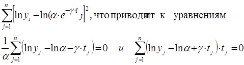 В этом случае целесообразно искать минимум суммы квадратов отклонений логарифмов этих же функций: