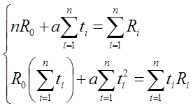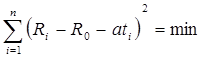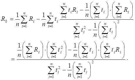 Найдем температурную зависимость сопротивления проволоки R=R0+at, используя метод наименьших квадратов.
