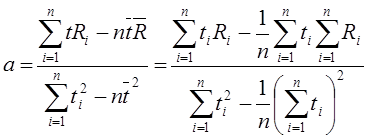 Предположим, что искомая зависимость выражается функцией Y = f(t, a1, ..., am), где аi – параметры. Значения этих параметров определяются так, чтобы точки уi располагались по обе стороны кривой у = f(x) как можно ближе к последней, то есть чтобы сумма квадратов отклонений измеренных уi от функции Y=f(t) была бы наименьшей. Разброс точек Yi относительно кривой Y=f(t) подчиняется закону нормального распределения. Мерой этого разброса является дисперсия σ2 или ее приблизительное выражение - средний квадрат отклонения.