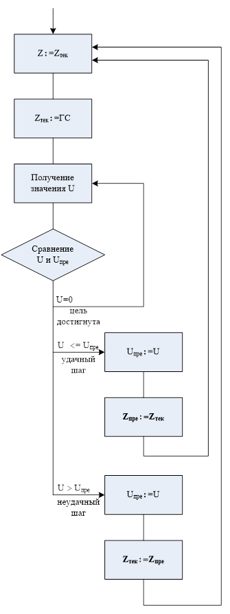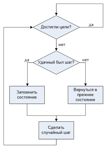 В него мы введём дополнительный объект 1-го порядка, изменение состояния которого через универсальный интерфейс отражается на остальных объектах 1-го порядка. Введём также генератор случайности, дающий возможность случайно выбрать, какой объект 1-го порядка следует изменить наиболее сильно и в каком направлении. Но одних только случайных изменений недостаточно. Необходимо также устройство, которое запомнит удачный шаг, приблизивший нас к цели, либо позволит вернуться к предыдущему состоянию системы, если шаг окажется неудачным.