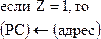 Команды условного перехода проверяют значения разрядов регистра признаков и определяют последующий ход выполнения программы в зависимости от результата проверки. Эти команды повлекут за собой загрузку адреса в счётчик команд только если условия будут выполнены. В противном случае PC будет инкрементирован нормально.