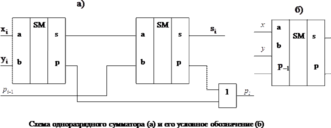 где p - сигнал переноса, переданный на вход схемы при последовательном соединении нескольких однотипных устройств.