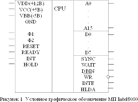 Условное графическое обозначение МП КР580ВМ80 показано на рисунке 1.