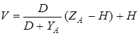 Обозначая координаты модели отображения линейной перспективы как U - горизонтальную координату и V - вертикальную координату из подобия треугольников получаем соотношения: